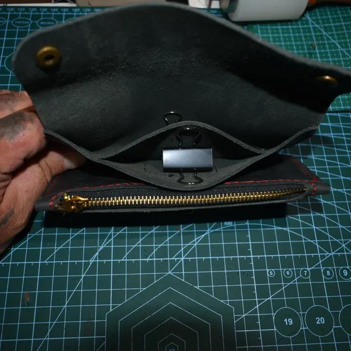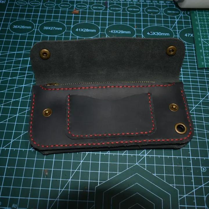 Prototype biker wallet 1.8mm tile Grey crazy horse leather with red stitching